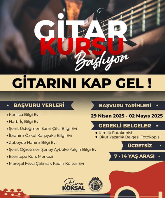 "Müziğin ritmiyle buluşmaya var mısınız? Ücretsiz gitar kursumuz başlıyor. Gitarını kap, müziğin büyülü dünyasına adım at!"