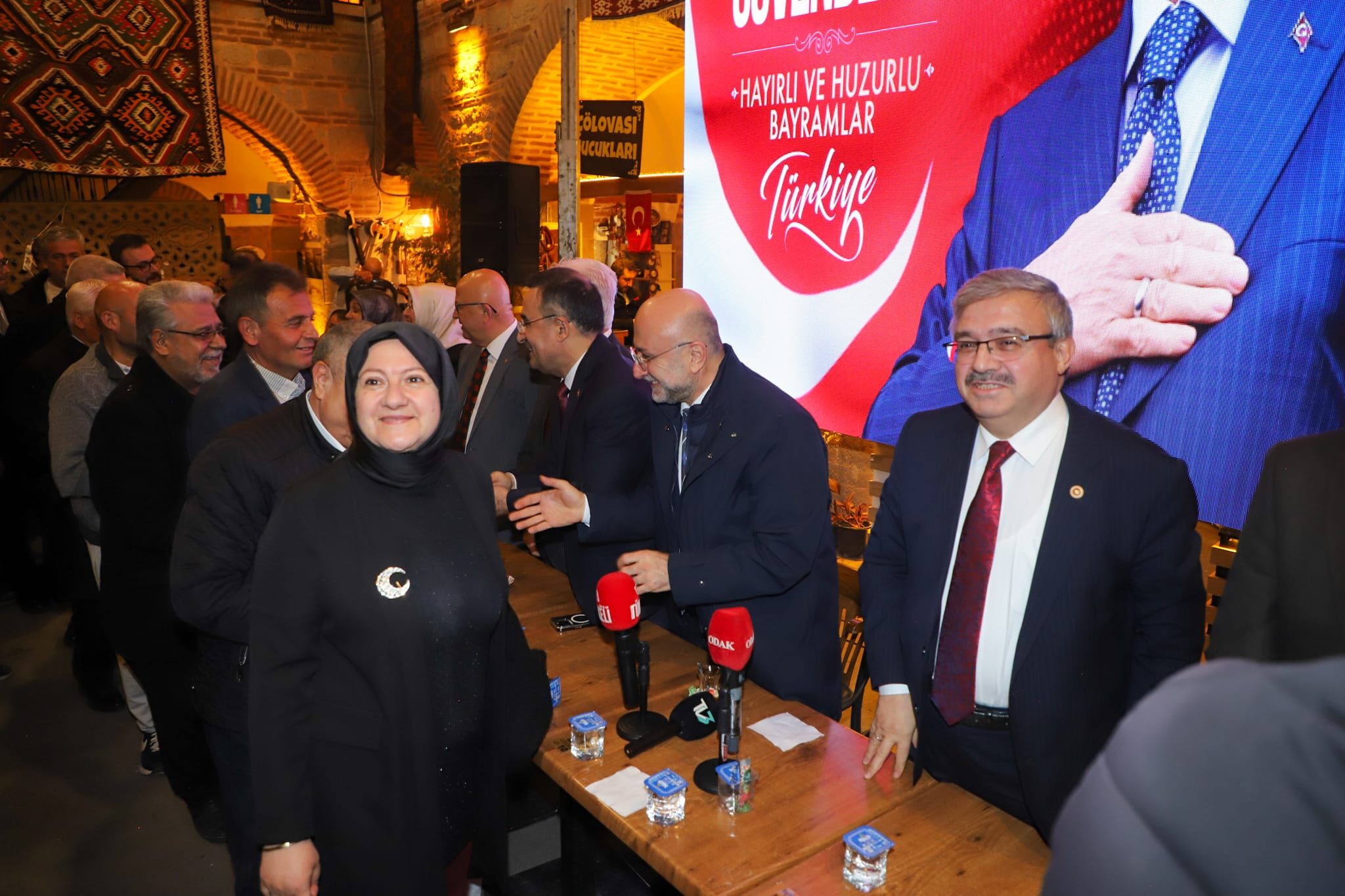 Afyonkarahisar’da bayramın ruhu, AK Parti İl Başkanlığı tarafından düzenlenen dev organizasyonla Taşhan’da hayat buldu. Programa AK Parti Afyonkarahisar İl Başkanı Av. Turgay Şahin ev sahipliği yaparken; Milletvekilleri İbrahim Yurdunuseven ve Hasan Arslan, eski Bakan Yardımcısı Ahmet Koca ile geçmiş dönem milletvekilleri Mahmut Koçak ve Halil Ürün gibi önemli isimler katıldı. Cumhurbaşkanı Recep Tayyip Erdoğan’ın bayram mesajının dev ekranda izlenmesiyle başlayan tören, teşkilatın sarsılmaz birliğini bir kez daha gözler önüne serdi.