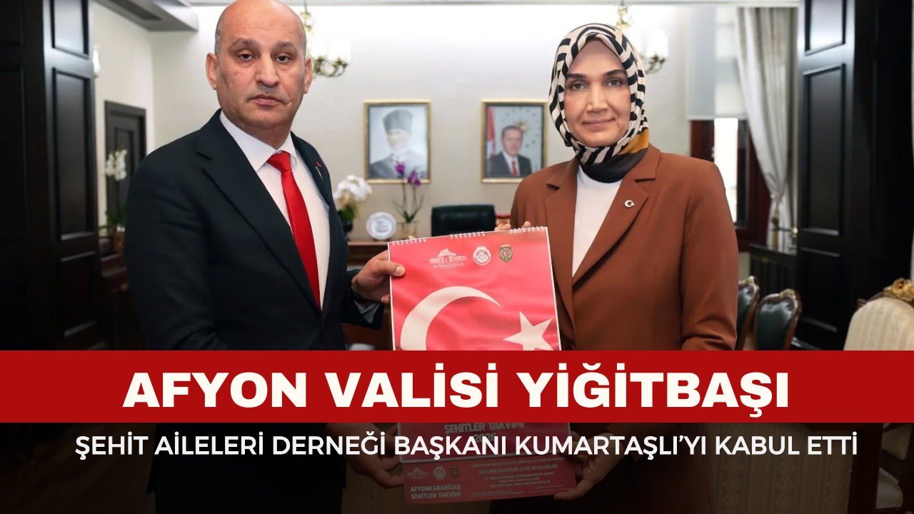 Afyonkarahisar Valisi Doç. Dr. Kübra Güran Yiğitbaşı, Türkiye Harp Malülü Gaziler, Şehit Dul ve Yetimleri Derneği Afyonkarahisar Şube Başkanı İsmail Kumartaşlı’yı makamında kabul etti.