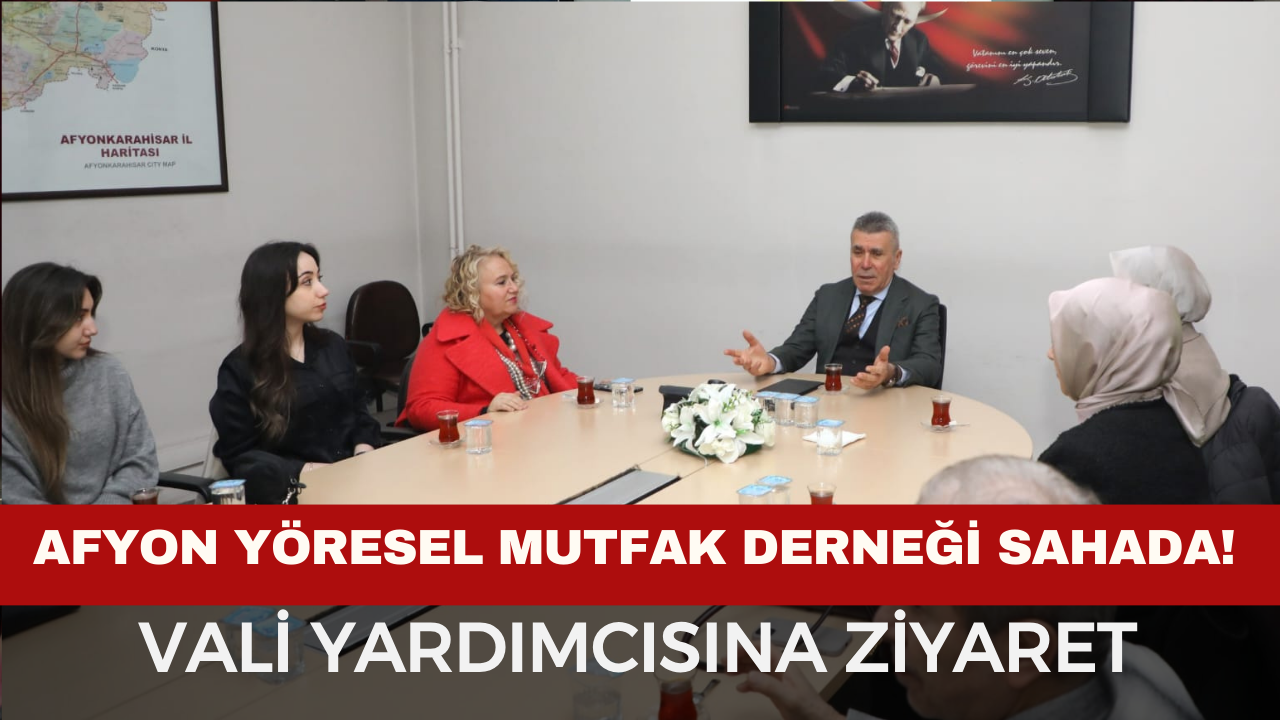 Afyonkarahisar’ın zengin gastronomi mirasını korumak, yöresel mutfağı ve kültürel değerleri turizmle buluşturmak amacıyla faaliyet gösteren Afyon Yöresel Mutfak Gastronomi Kültür ve Turizm Derneği, Afyon Vali Yardımcısı Yalçın Sezgin’i ziyaret etti.