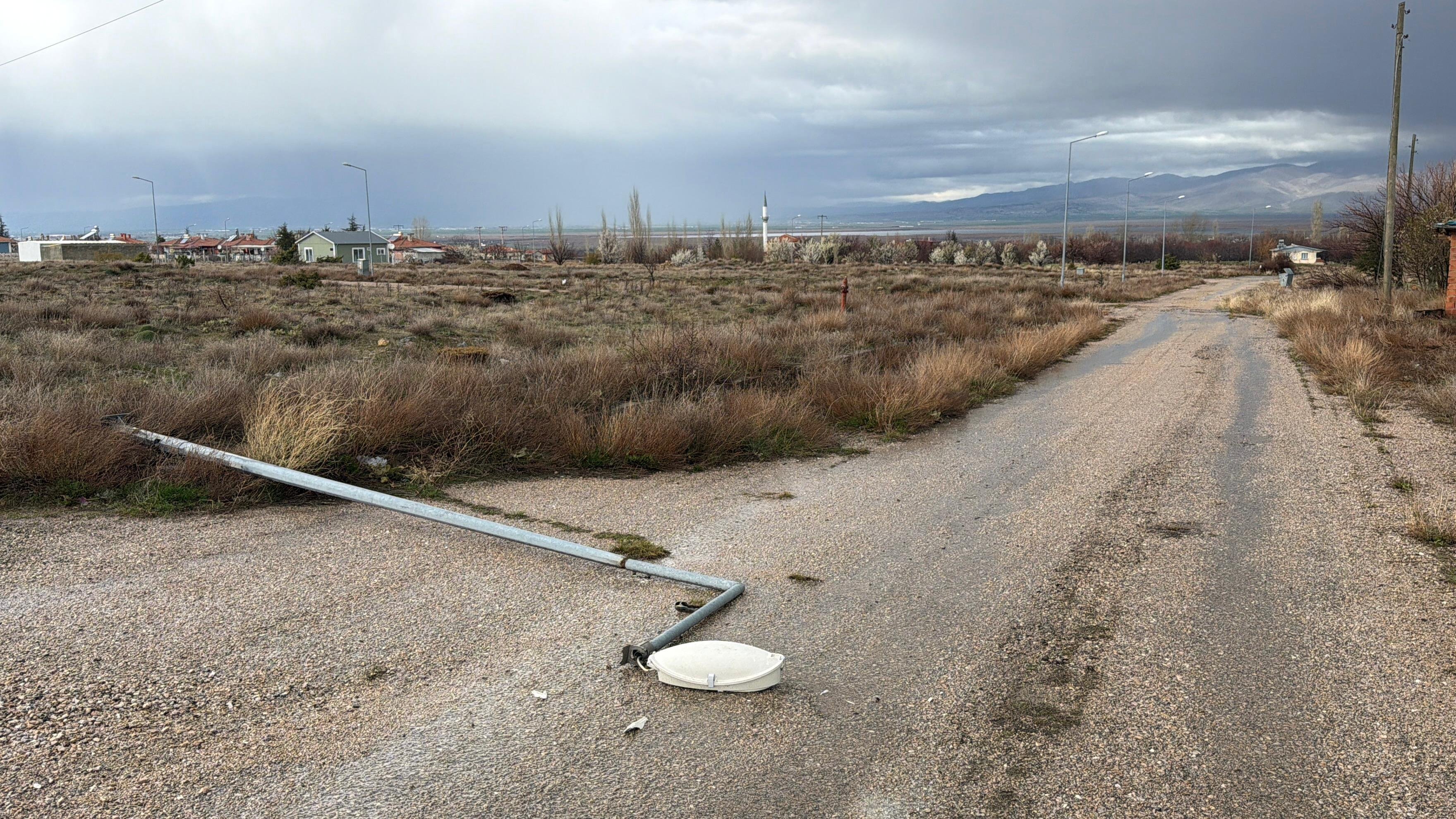 Afyonkarahisar genelinde etkili olan olumsuz hava koşulları, Çay ilçesinde tehlikeli bir kazaya yol açtı. Eber köyü Köroğlu Sokak üzerinde bulunan bir sokak aydınlatma direği, sağanak yağışların toprağı aşındırması ve şiddetli rüzgarın baskısıyla yerinden çıkarak yola devrildi.