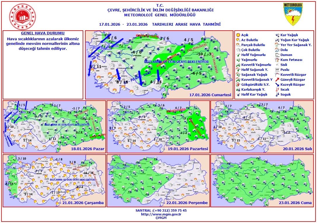 "Kuvvetli buzlanma ve don olaylarının görülmesi beklendiğinden; başta ulaşımda aksamalar olmak üzere, meydana gelebilecek tüm olumsuzluklara karşı vatandaşlarımızın ve ilgili kurumların dikkatli ve tedbirli olmaları önem arz etmektedir."