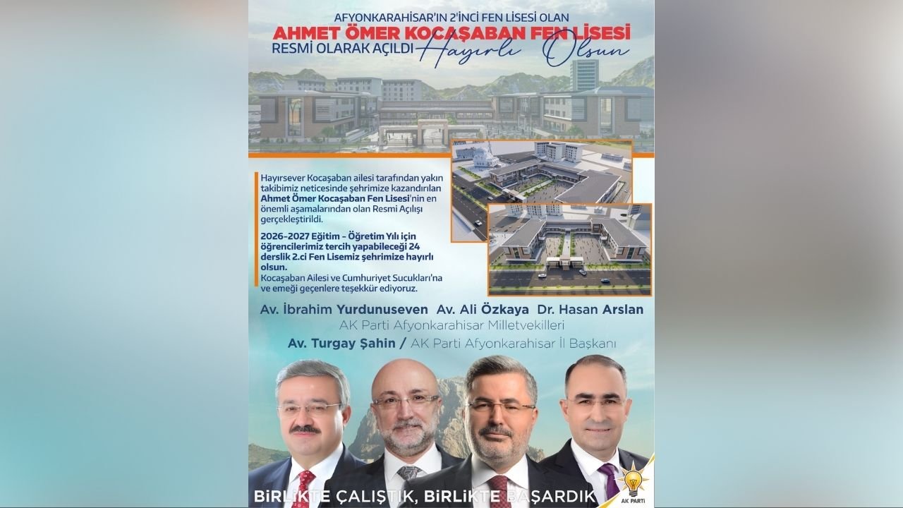 Ahmet Ömer Kocaşaban Fen Lisesi’nin hayata geçirilmesiyle birlikte, Afyonkarahisar’da başarılı öğrenciler için yeni bir eğitim kapısı açılacak. Projenin kısa sürede tamamlanarak eğitim-öğretim hayatına kazandırılması bekleniyor.