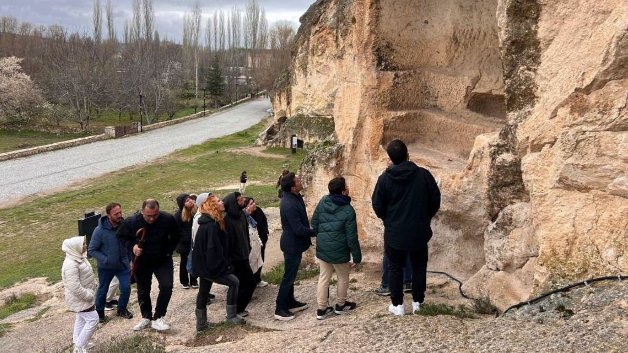 Frig uygarlığına ait izler, kaya yerleşimleri ve bölgenin arkeolojik dokusu rehber tarafından detaylı şekilde aktarıldı. Döğer Kervansarayı’nda ise tarihi ticaret yolları ve kervan kültürüne ilişkin bilgiler paylaşıldı. Ayazini bölgesindeki kaya oluşumları da öğretmenler tarafından yerinde incelendi.