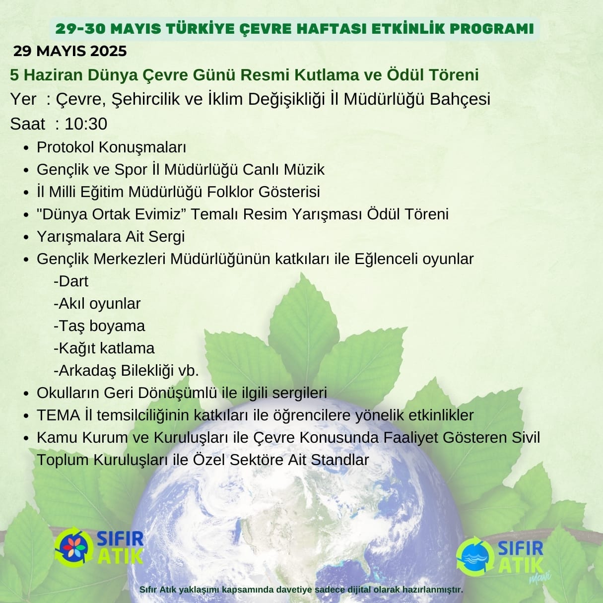 Etkinlikler, Sıfır Atık projesi kapsamında organize ediliyor. Davetiyelerin yalnızca dijital olarak hazırlandığı program, çevreye duyarlı bir yaklaşımı teşvik ediyor.
