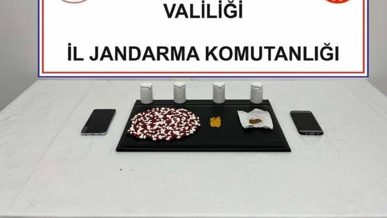 Güvenlik güçleri tarafından belirlenen adreste yapılan aramalarda; 207 adet sentetik uyuşturucu hap, 84 kullanımlık sentetik kannabinoid (peçete), 1 gram sentetik kannabinoid emdirilmiş tütün ve suçtan elde edildiği veya suçta kullanıldığı değerlendirilen 2 adet cep telefonu ele geçirildi.