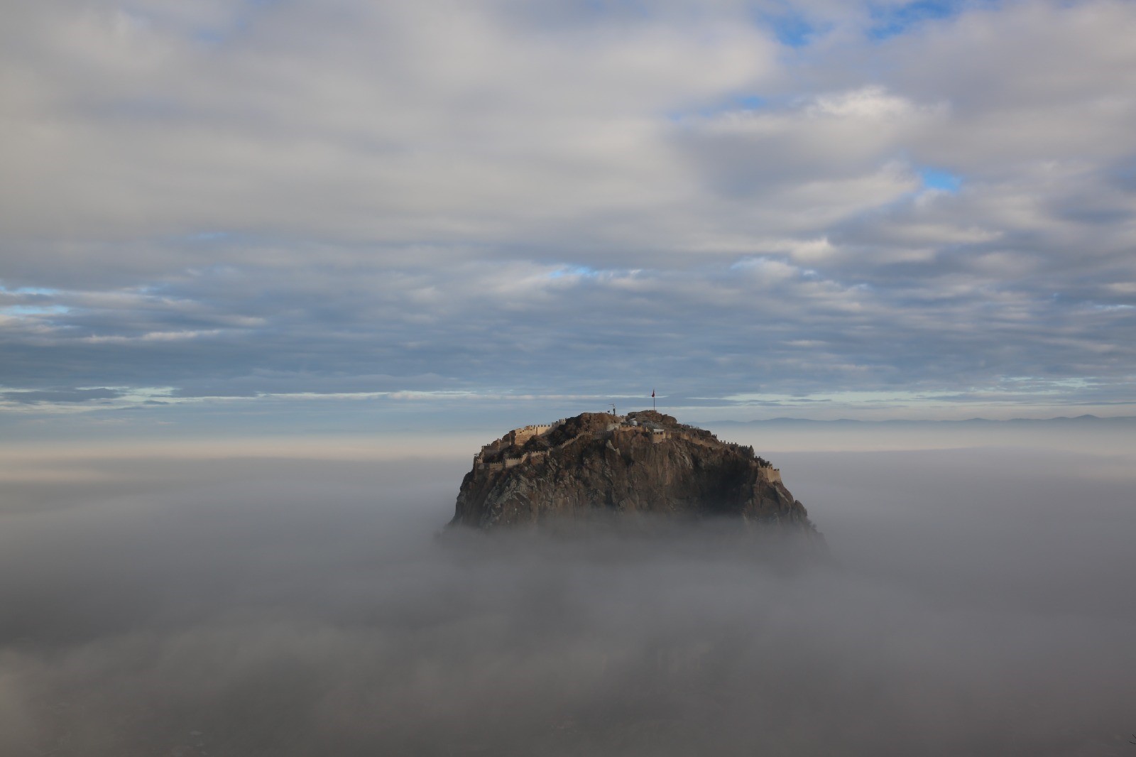 Afyonkarahisar'ın simgesi Karahisar Kalesi ile birlikte kentin farklı noktalarından çekilen sis görüntüleri görenleri mest etti.