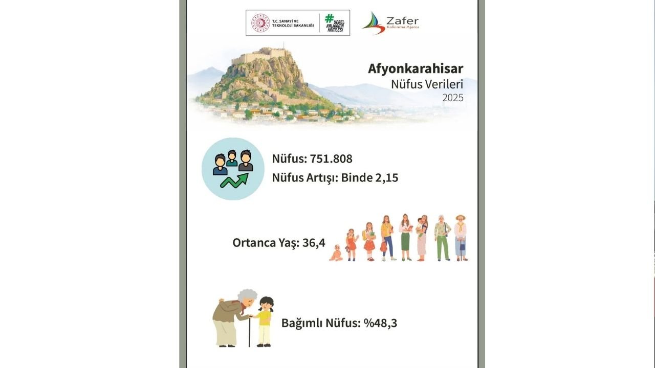 Afyonkarahisar İl Nüfus ve Vatandaşlık Müdürü Erkan Tanyeri, ilin toplam nüfusunun 751.808 kişiye ulaştığını duyurdu. Nüfus artış hızının binde 2,15 olarak gerçekleştiğini belirten Tanyeri, şehrin 36,4 olan ortanca yaşı ve sosyal yapısıyla çalışma çağındaki nüfus potansiyelini koruduğuna dikkat çekti.