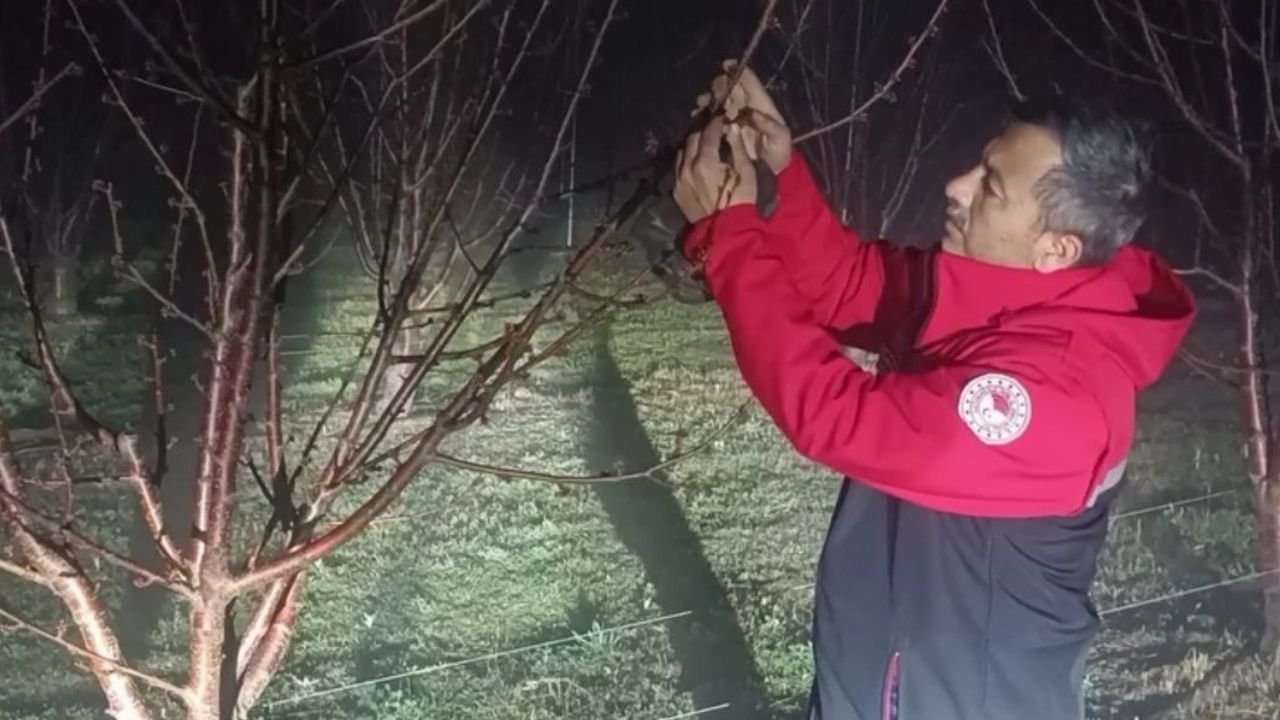 Hava sıcaklığının sıfırın altına düştüğü gece saatlerinde çiftçiler, bahçelerin stratejik noktalarında saman ve lastik yakarak "dumanlama" yöntemiyle sıcaklığı dengede tutmaya çalıştı. Gece boyunca sönmeyen ateşlerin başında bekleyen üreticiler, sabahın ilk ışıklarına kadar nöbet tutarak çiçek açan ağaçlarını koruma altına aldı.,