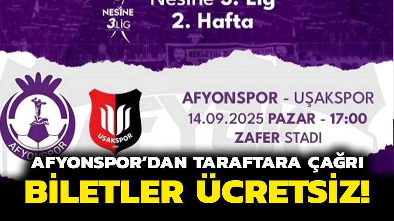 14 Eylül Pazar günü saat 17.00’de Zafer Stadı’nda oynanacak karşılaşmada tribünlerin dolması bekleniyor. Afyonspor yönetimi, karşılaşmanın biletlerinin ücretsiz olacağını duyurarak taraftara çağrı yaptı. Sezonun ilk iç saha maçında Afyonspor, taraftar desteğini arkasına alarak sahadan galibiyetle ayrılmayı hedefliyor. Tribünlerde coşkulu bir atmosfer oluşturulması bekleniyor.