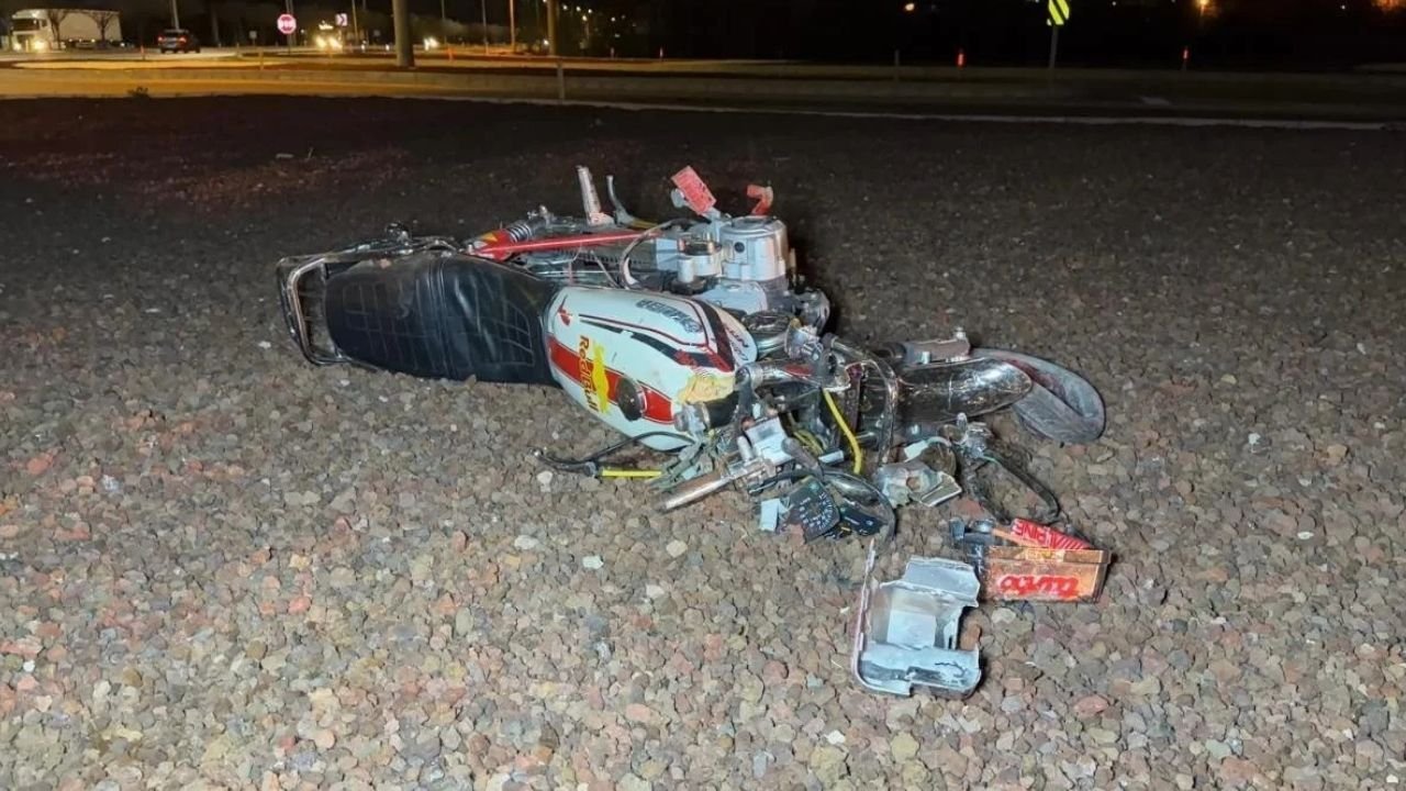 Kontrolden çıkan motosiklet orta refüje çarptı. Çarpmanın etkisiyle motosiklet parçalanarak yol kenarında bulunan peyzaj alanına savruldu.
