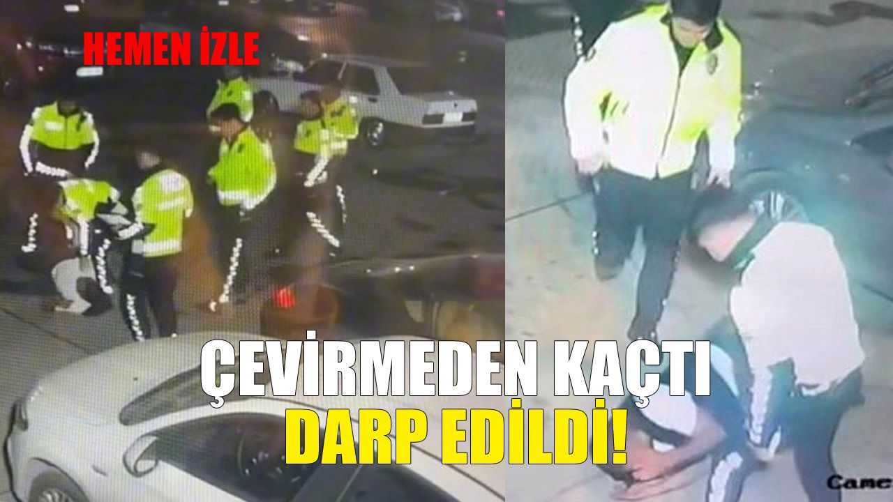 Çevirmeden kaçtığı iddia edilen bir kişi, yaşanan gerginlikte trafik polisleri tarafından darp edildi. Olaya karışan polisler, başlatılan idari soruşturma kapsamında açığa alınırken darp anları ise bir işyerinin güvenlik kamerasına yansıdı.