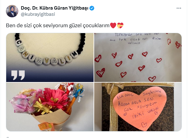 Vali Yiğitbaşı ise çocukların bu jestine sosyal medya hesabından paylaşım yaparak karşılık verdi. Yiğitbaşı mesajında, “Ben de sizi çok seviyorum güzel çocuklarım” ifadelerine yer verdi.