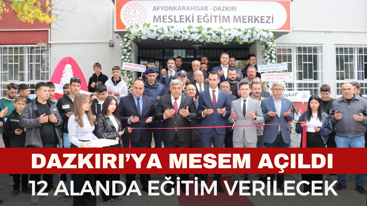 Dazkırı Mesleki Eğitim Merkezi’nin açılış töreni; Dazkırı Kaymakamı Serkan Ala, Belediye Başkanı Fatih Çiçek, İl Milli Eğitim Müdürü Miraç Sünnetci, İlçe Milli Eğitim Müdürü Abdullah Erdoğan, şube müdürleri, öğretmenler, öğrenciler ve velilerin katılımıyla gerçekleştirildi.