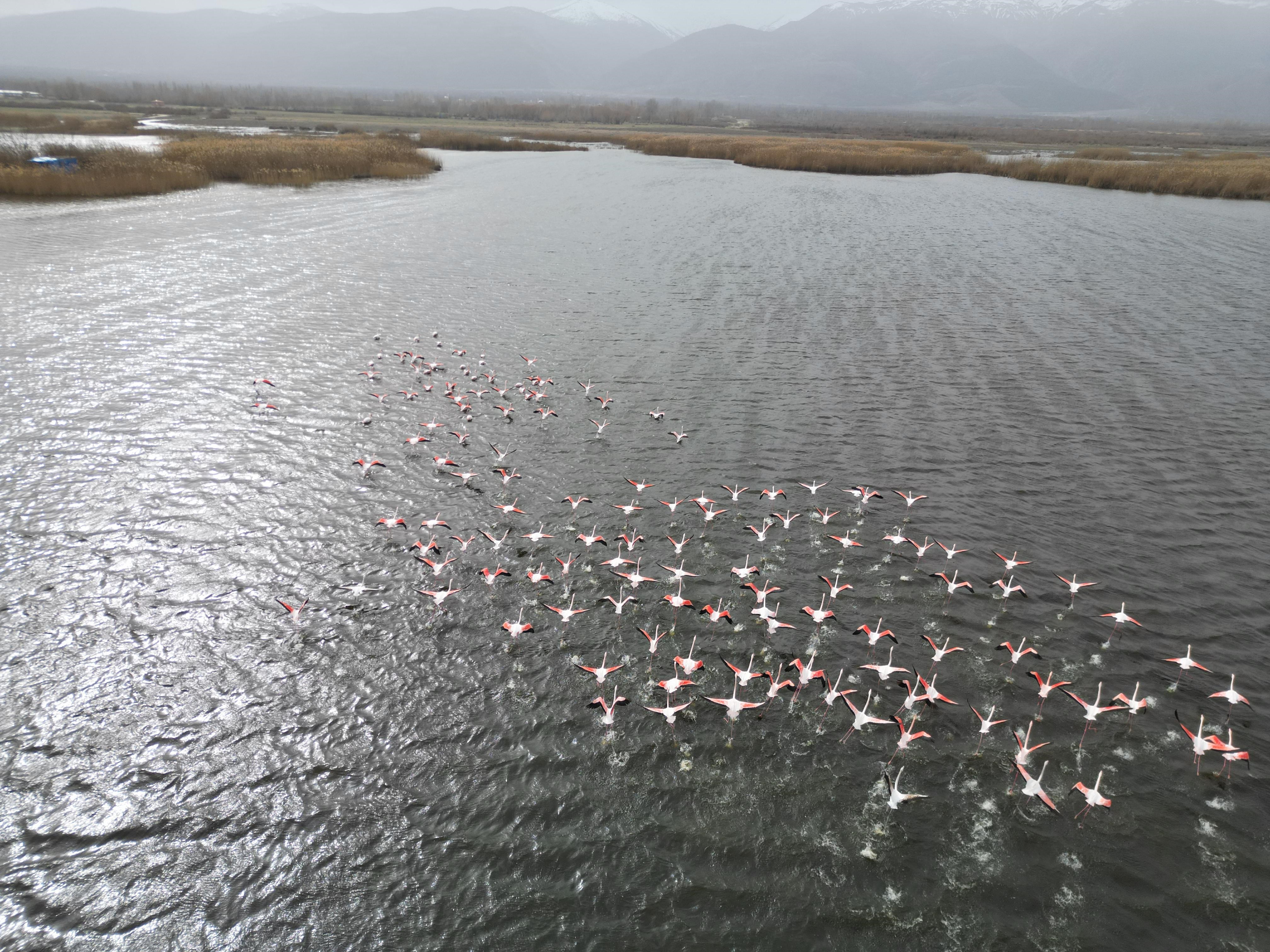Flamingoların pembe renkleri, özellikle gölün yakınından geçen vatandaşların dikkatini çekti. Bu nadir görülen manzara, bölgedeki doğal yaşamın zenginliğini bir kez daha gözler önüne sererken, gölde su seviyesinin de arttığı gözlemlendi.
