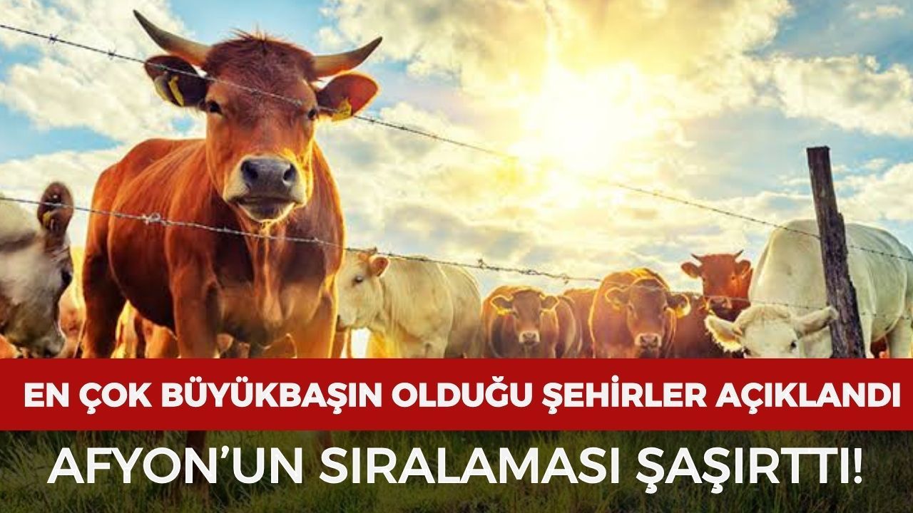 Tarım ve Orman Bakanlığı’nın TÜİK verilerine dayandırdığı istatistiklere göre Türkiye’de en fazla büyükbaş hayvan bulunan şehirler sıralandı. İç Anadolu ve Doğu Anadolu illerinin ağırlıkta olduğu sıralamada Afyonkarahisar da ilk 10 içinde yer aldı.
