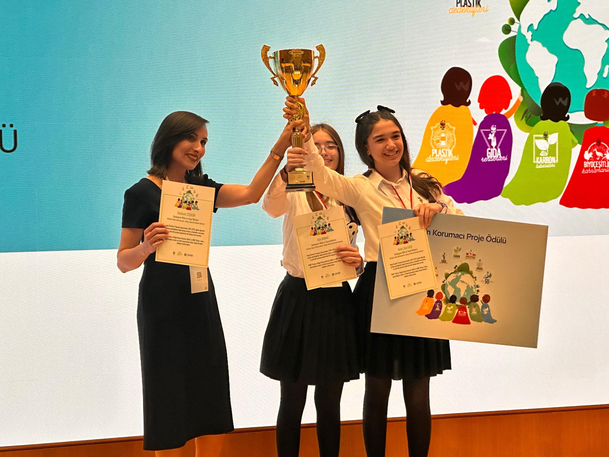 Türkiye genelinde seçilen 11 proje arasında yer alan “Sofranın Süper Kahramanları: Atıksız Gelecek Bizimle Gelecek” adlı çalışma, “En Korumacı Proje” ödülüne layık görüldü. Projenin danışmanlığını Makbule Coşkun yürütürken, başarılı projeye öğrenciler Nehir Zülal Ekşi ve Ada Durak imza attı.