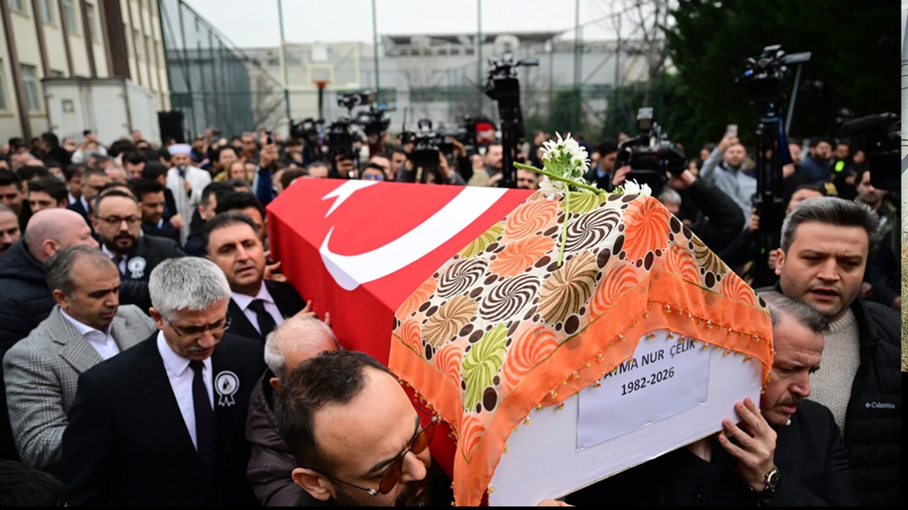 Çekmeköy Taşdelen Borsa İstanbul Mesleki ve Teknik Anadolu Lisesi’nde düzenlenen törende, Fatma Nur Çelik’in Türk bayrağına sarılı cenazesi mesai arkadaşları ve öğrencilerinin omuzlarında okula getirildi. Törene devletin zirvesi ve eğitim sendikaları tam kadro katılırken, saldırgan F.S.B. hakkındaki iddialar törene damga vurdu.