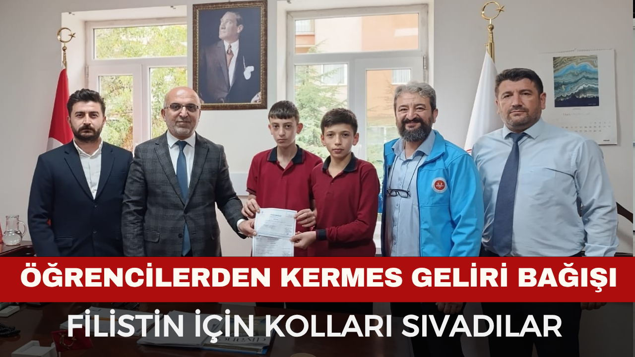Okulda düzenlenen kermesten elde edilen gelir, Susuz İmam Hatip Ortaokulu Müdür Yardımcısı Ahmet Tayyip Yıldız ve öğrenciler tarafından, Türkiye Diyanet Vakfı (TDV) aracılığıyla Filistin’deki mazlum kardeşlerimize ulaştırılmak üzere Afyonkarahisar İl Müftüsü Lütfü İmamoğlu’na makbuz karşılığında teslim edildi.