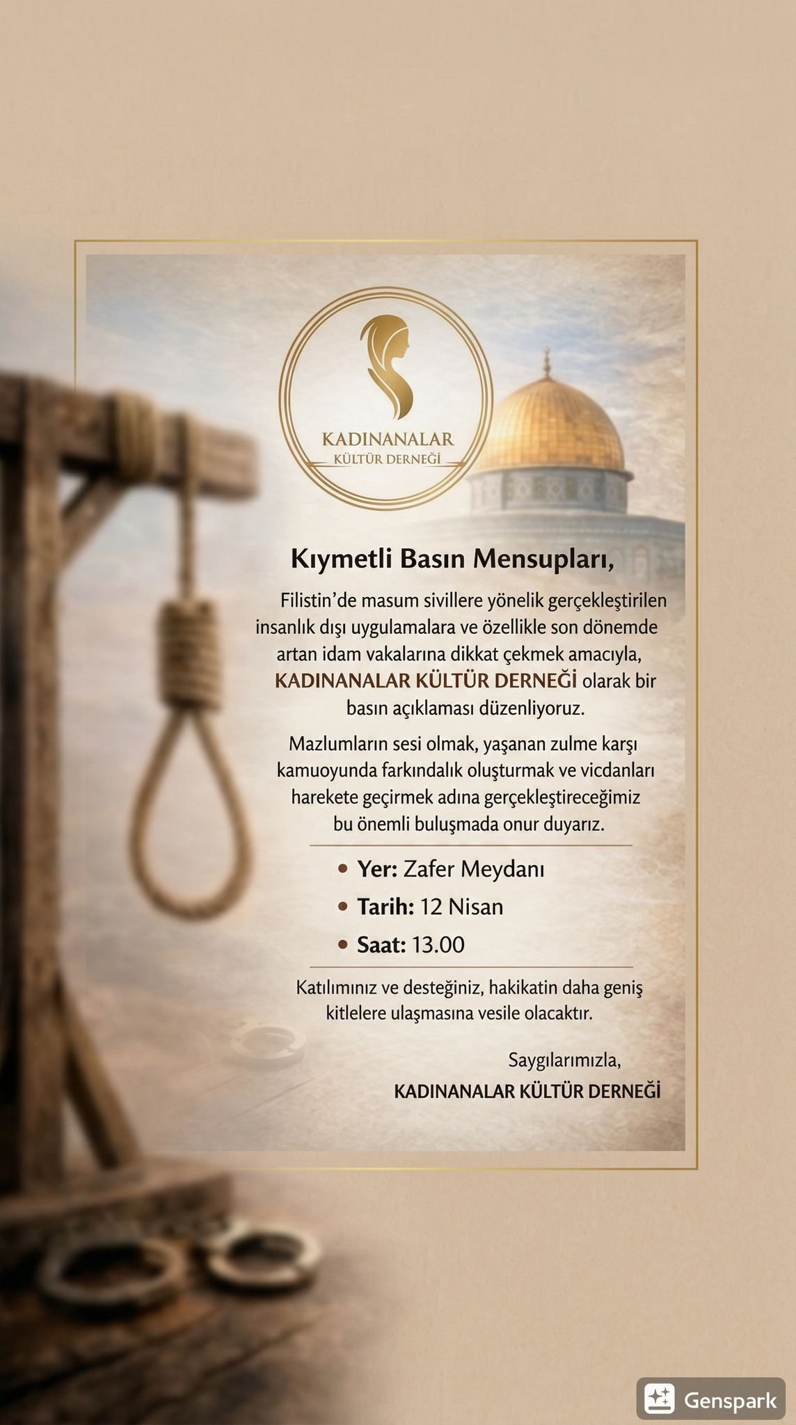 Kadınanalar Kültür Derneği, Filistin topraklarında masum sivillere yönelik sürdürülen saldırıları ve temel yaşam hakkının yok sayılmasını en güçlü şekilde kınadığını duyurdu. Dernek tarafından yapılan kamuoyu açıklamasında, yaşananların yalnızca bir bölgenin değil, tüm insanlığın vicdan yarası olduğu vurgulandı.