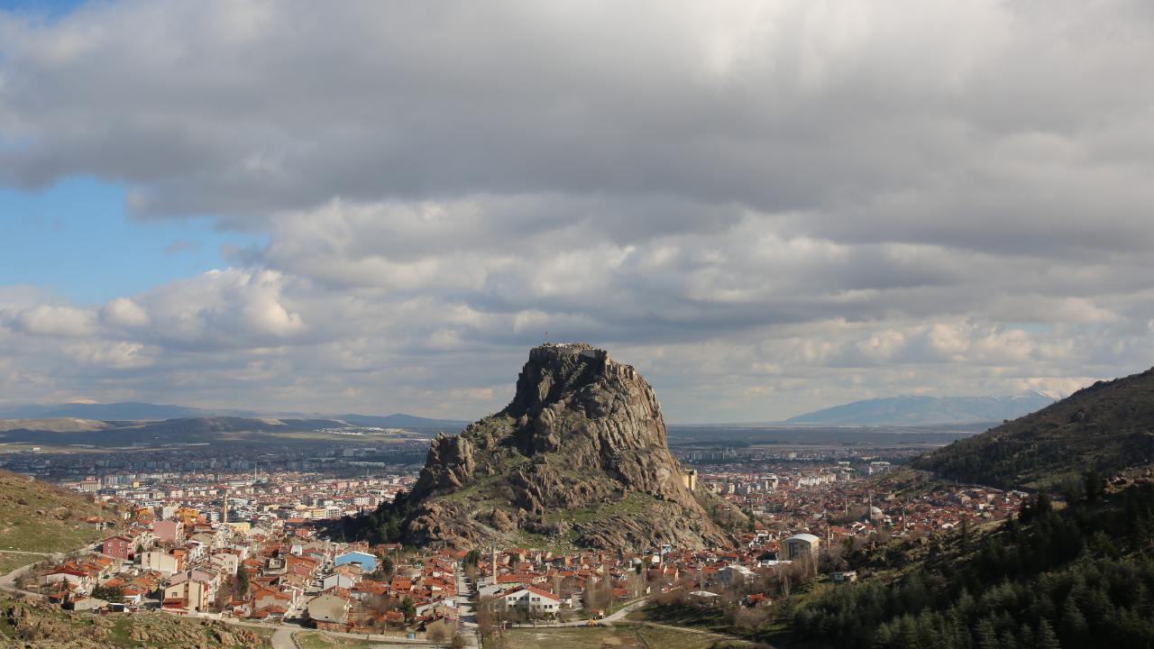 Afyonkarahisar’ın her noktasından görülebilen ve şehre adını veren 226 metre yükseklikteki Karahisar Kalesi, bu kez gökyüzündeki hareketlilikle gündeme geldi. Kale üzerinde hızla hareket eden bulutların oluşturduğu manzara, izleyenlere adeta bir görsel şölen sundu.