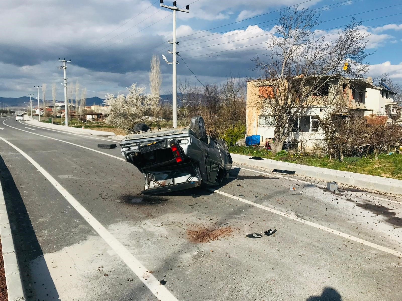 Çarpışmanın etkisiyle kontrolden çıkan A.A.’nın otomobili takla atmaya başladı.
