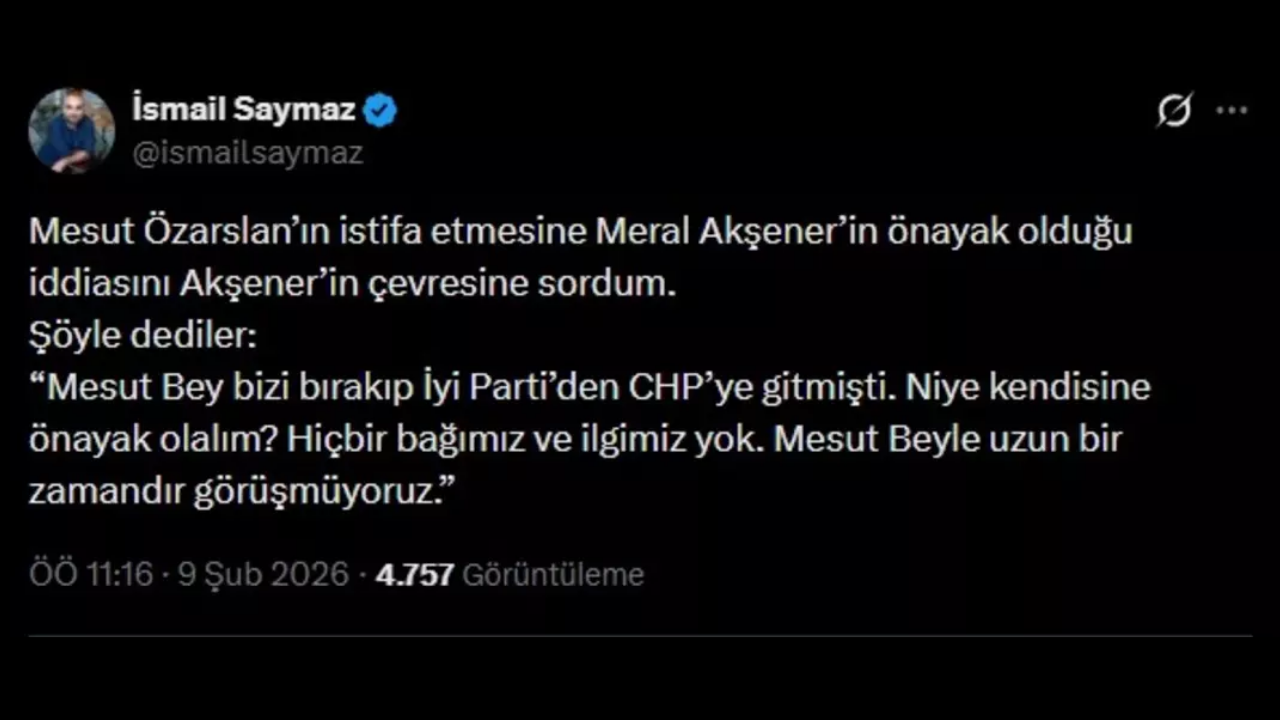 Gazeteci İsmail Saymaz, iddiayı Akşener’in yakın çevresine sordu. Aldığı yanıt ise iddiaları reddeder nitelikteydi: