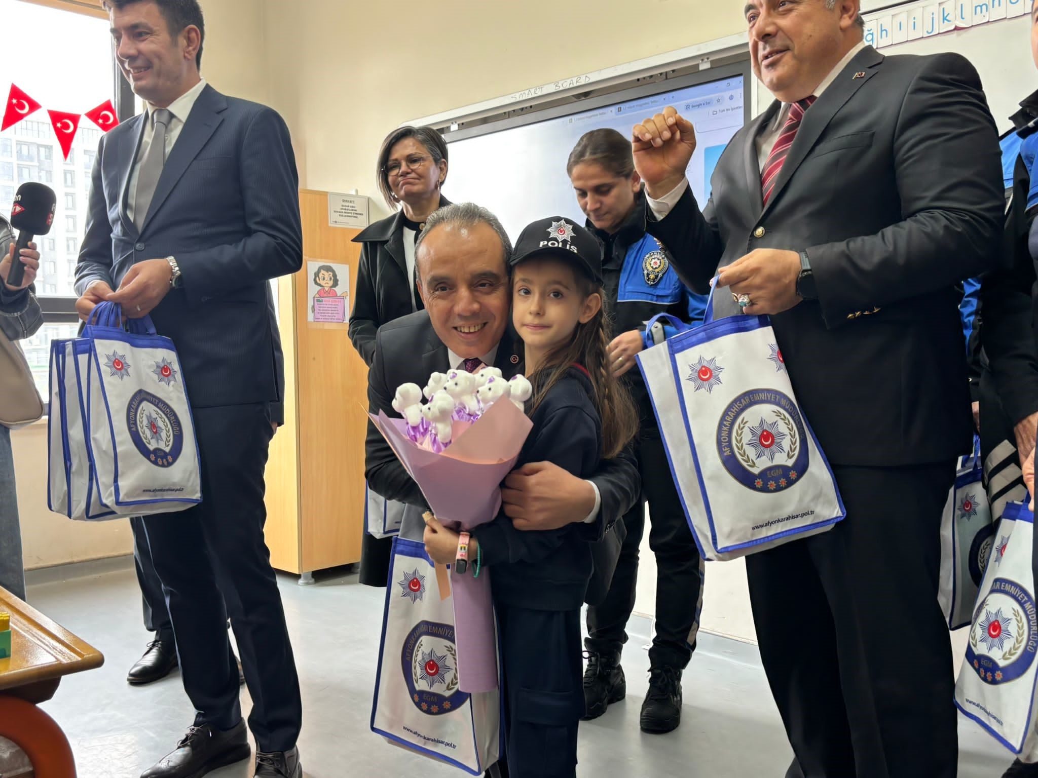 İl Emniyet Müdürü Ahmet Birtan Erol ise Defne’nin seçim vaadinde ki davetini kırmayarak okulu ziyaret etti. Minik başkanın bu anlamlı vaadi hem sınıf arkadaşlarını sevindirdi hem de okulda unutulmaz bir gün yaşattı.