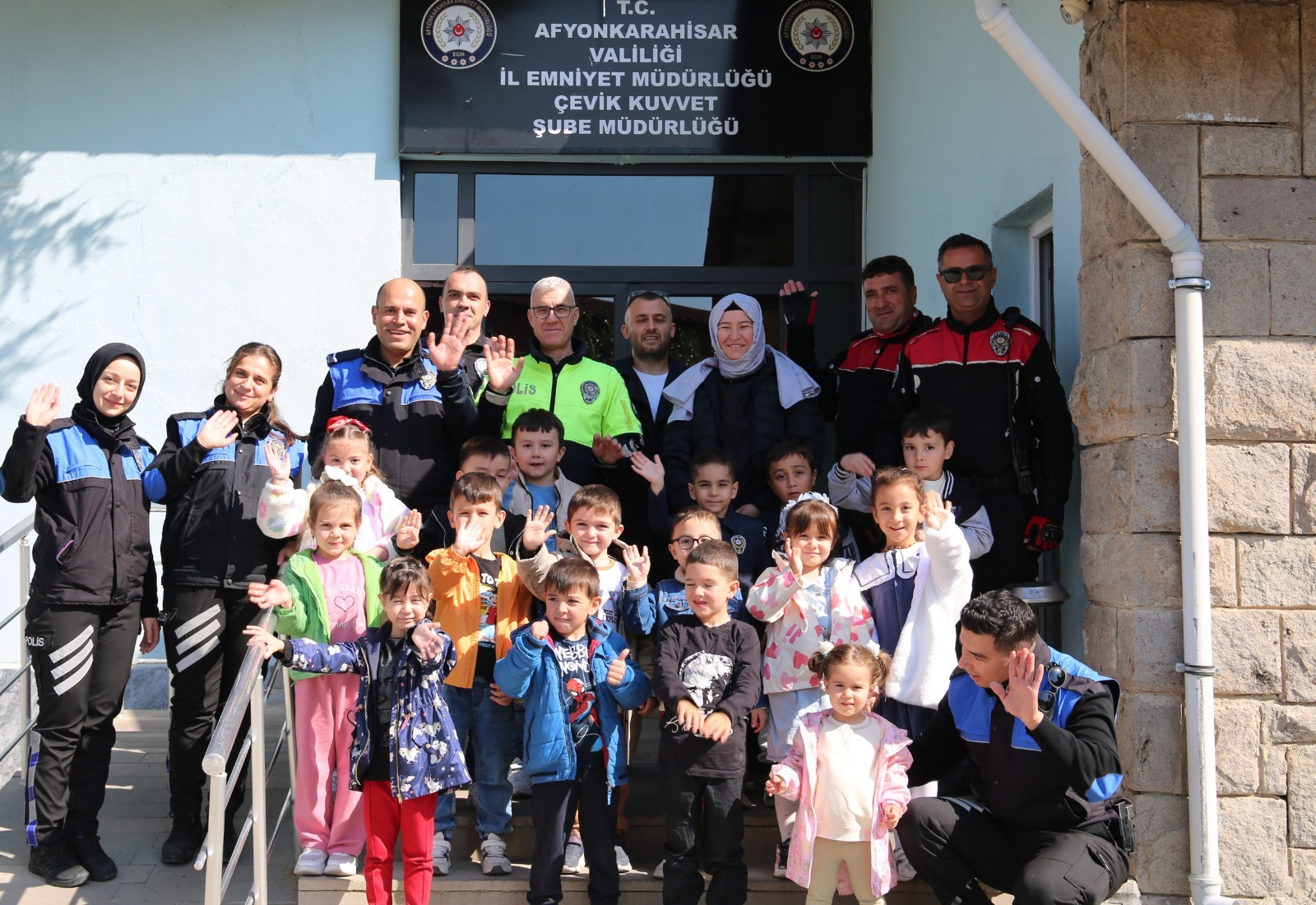 Afyonkarahisar İl Emniyet Müdürlüğü, toplumsal bilinç ve güvenlik kültürünün küçük yaşta kazandırılması amacıyla eğitim çalışmalarına devam ediyor. Bu kapsamda Nene Hatun Anaokulu öğrencileri, İl Emniyet Müdürlüğü’nü ziyaret etti.