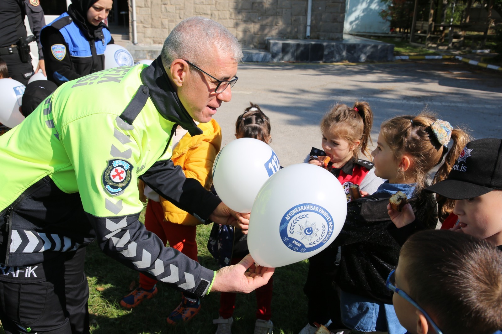 Etkinlikte, minik öğrencilerin keyifli vakit geçirdiği gözlemlenirken, emniyet personeli çocuklara güvenlik bilincini eğlenceli bir şekilde aktardı.