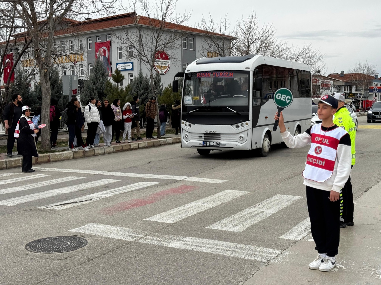 Afyonkarahisar Emniyet Müdürlüğü ekipleri, Şehit Şükrü Karadirek Ortaokulu'nda öğrenci ve velilere yönelik kapsamlı bir “Okul Geçidi Görevlileri” eğitimi gerçekleştirdi. Okul giriş-çıkış saatlerinde yaşanabilecek trafik kazalarını önlemek ve güvenli geçişleri sağlamak amacıyla verilen eğitimde; teorik bilgilerin yanı sıra sahada uygulamalı teknikler gösterilerek gönüllülerin can güvenliği önlemleri en ince ayrıntısına kadar öğretildi.
