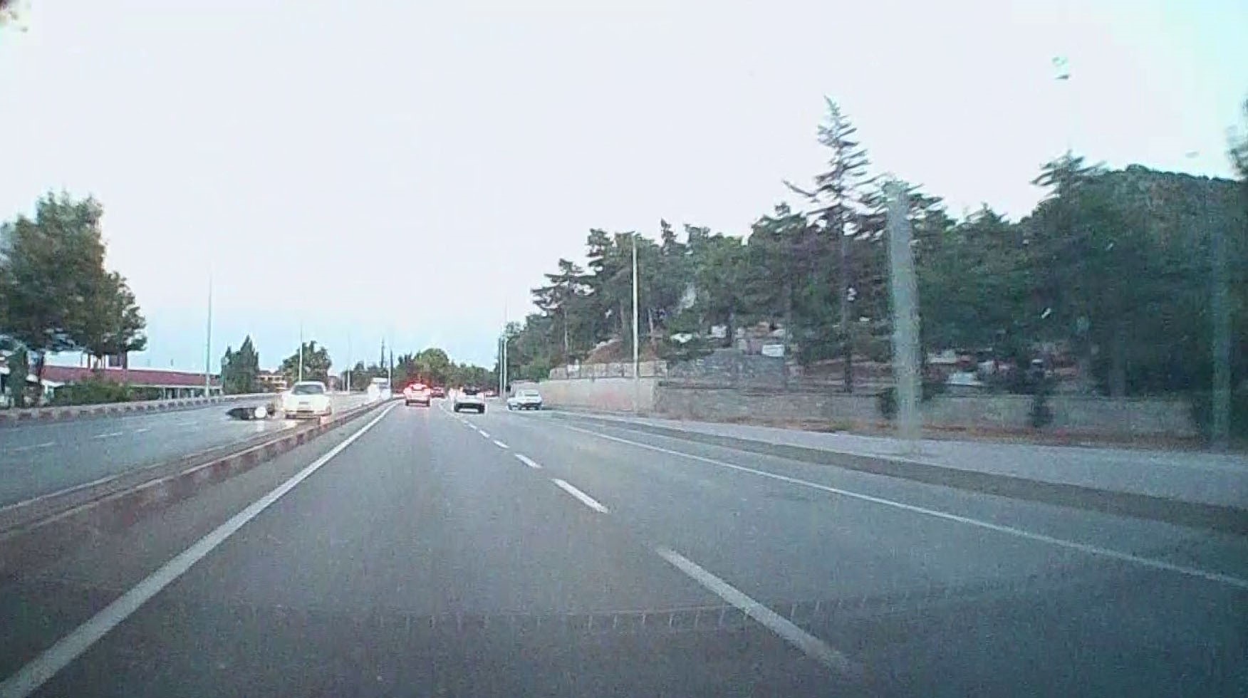 Afyonkarahisar'da otomobilinin çarpması sonucunda yerde sürüklenen motosikletlinin yaralandığı kaza bir araç kamerası ile görüntülendi.