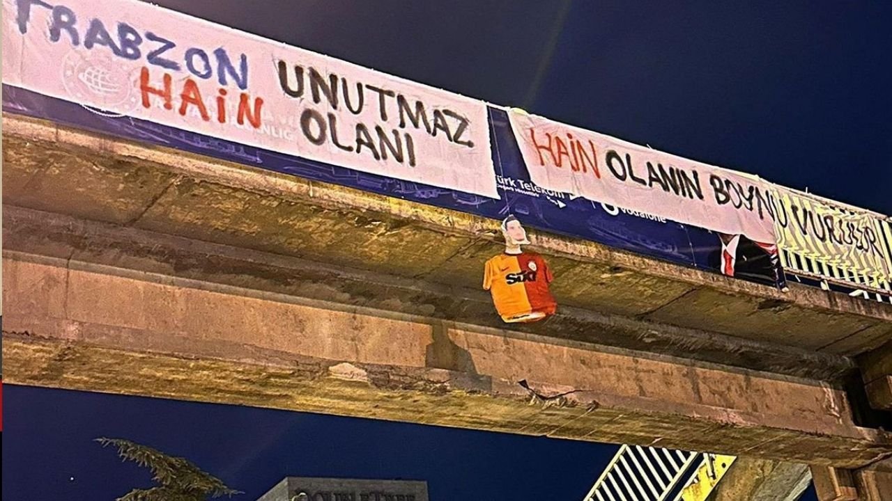 Galatasaray kafilesinin konakladığı otelin yakınlarındaki bir üst geçide asılan görüntüler sosyal medyayı ayağa kaldırdı. Pankartta "Trabzon unutmaz, hain olanı" ifadesi yer alırken, asılan cansız bir mankenin üzerine Uğurcan Çakır’ın yüzünün yapıştırıldığı görüldü. Bu sert protesto, emniyet güçlerini de teyakkuza geçirdi.