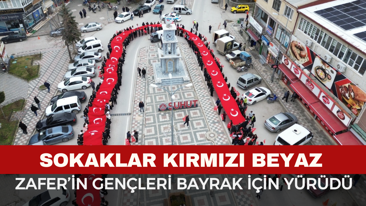 Şuhut Zafer Anadolu Lisesi tarafından düzenlenen Bayrak Sevgisi temalı yürüyüş ilçe halkına duygu dolu anlar yaşattı. Etkinlikte öğrenciler 150 metre uzunluğundaki Türk Bayrağını ellerinde gururla taşıdı.