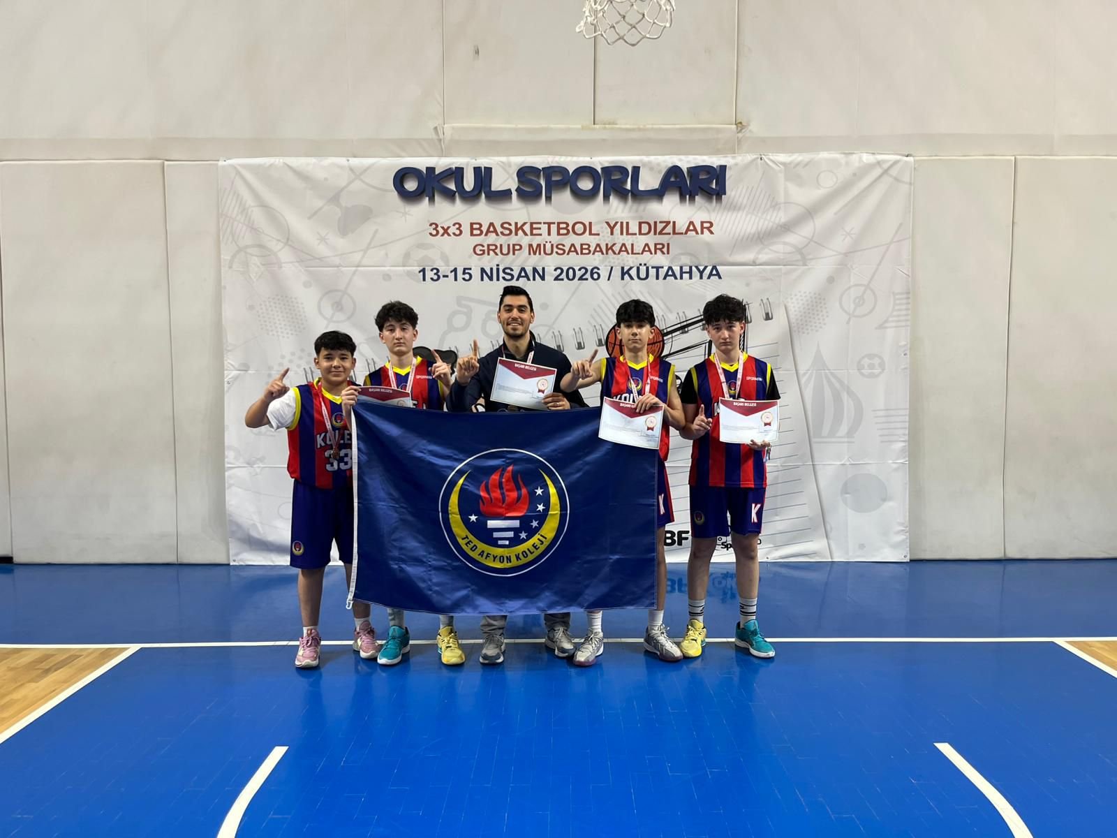 TED Afyon Koleji Yıldız Erkekler Takımı, grup aşamasında sergilediği performansla rakiplerine şans tanımadı. Oynadığı 4 maçın tamamını kazanarak 4’te 4 yapan temsilcimiz, lider olarak yükseldiği eleme turlarında da etkileyici oyununu sürdürdü. Yarı final ve final müsabakalarında da sahadan galibiyetle ayrılan ekip, Kütahya’dan şampiyonluk kupasıyla döndü.